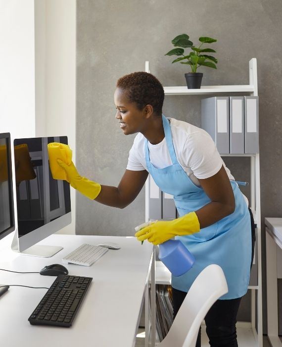 - Office Spaces: Desk sanitization, floor care, window cleaning, break room maintenance